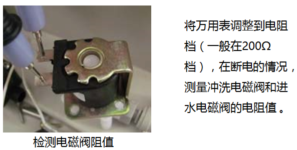 5.進(jìn)水電磁閥和沖洗電磁閥的測量與判定方法