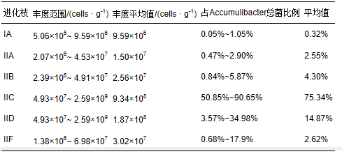 表3 12個樣品中C and idatus Accumulibacter中各進化分支的比例