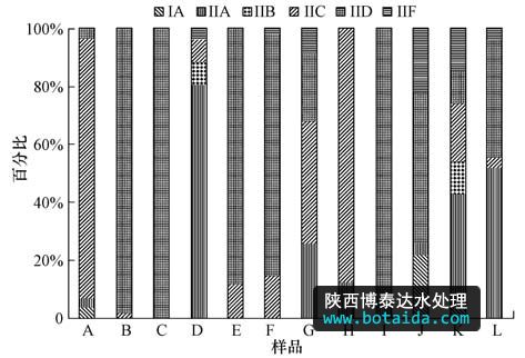 2)12個活性污泥樣品的系統(tǒng)發(fā)育分析也證實了Accumulibacter以Type II 為主,Type I少量存在.TypeII中以IIC、IID、IIA為主,IIB、IIF豐度偏低.