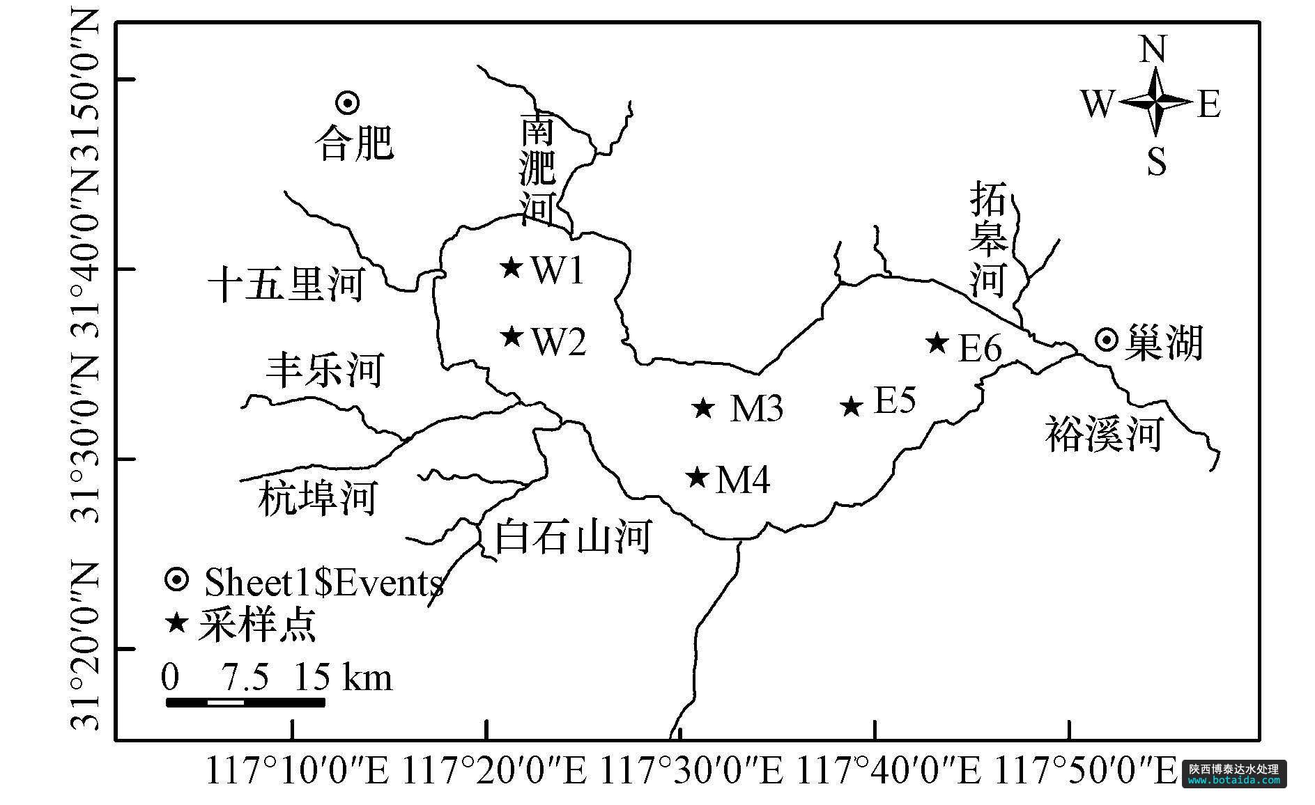 圖1 巢湖湖區(qū)采樣布點(diǎn)示意圖