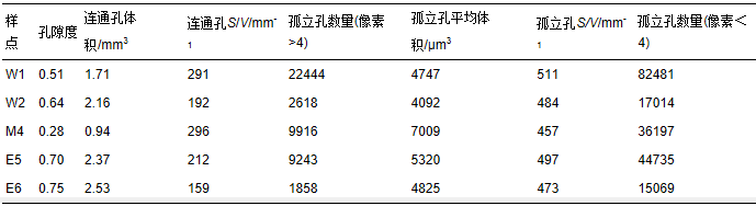 表3 巢湖W1點(diǎn)不同深度沉積物孔隙群統(tǒng)計(jì)表(3.375 mm3,250×250×250像素)