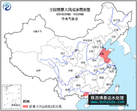 陜西博泰達水處理科技有限公司提醒大家:雷暴大風可能造成棚舍和廣告牌等搭建物的倒塌,并對高空作業(yè)和水域作業(yè)產(chǎn)生影響,短時強降水可能引起城市內(nèi)澇阻礙交通。北京、天津等地需提前做好大城市的防汛、防內(nèi)澇工作;華北和黃淮東部等麥收區(qū)需抓住晴好天氣搶收小麥,防范雷暴大風、冰雹等強對流天氣的影響。