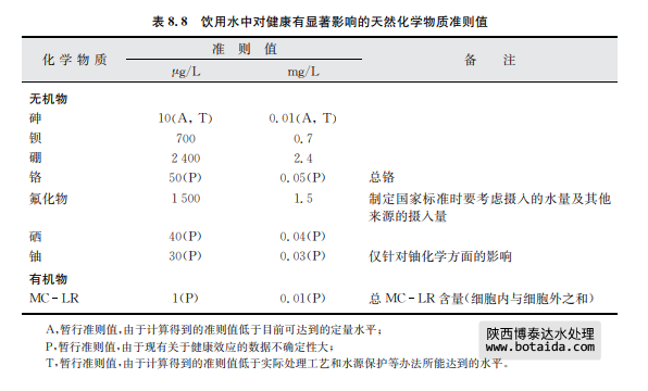 處理天然化學(xué)物質(zhì)的方法隨化學(xué)物質(zhì)的性質(zhì)和來源不同而不同。對于主要來自巖石和 沉積物的無機(jī)污染物,重要的是水源的選擇,需確定水源是否適用或經(jīng)過處理是否可同時消 除微生物污染和去除水中的特定污染物。在某些情況下,當(dāng)有多個備選水源時,可將污染物 濃度較低的水用于稀釋或混合含污染物濃度較高的水來達(dá)到期望的結(jié)果。