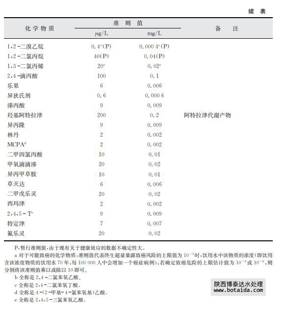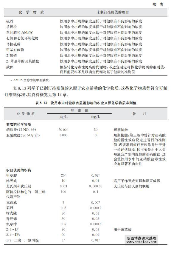 由于一些關(guān)于飲用水中存在化學(xué)物質(zhì)以及其穩(wěn)定性的文獻(xiàn)有明顯證據(jù)指出某些農(nóng)業(yè) 來(lái)源的化學(xué)物質(zhì)不會(huì)出現(xiàn)在飲用水中,對(duì)于此類化學(xué)物質(zhì)本準(zhǔn)則不考慮建立準(zhǔn)則值(見表 8.11)。