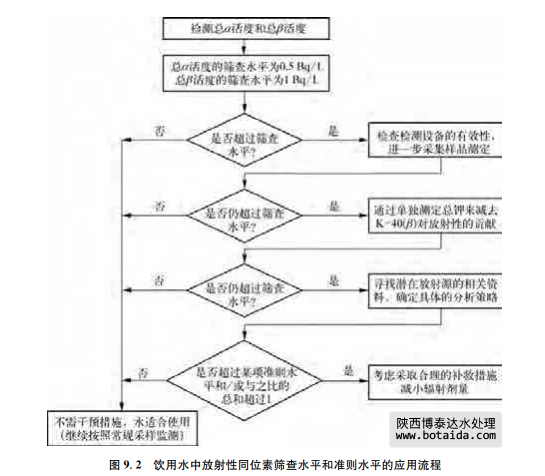 在本準(zhǔn)則的第二版中,根據(jù)總α活度和總β活度的篩查水平分別為0.1Bq/L和1Bq/L 確定了IDC為0.1mSv/年。這個IDC表示,自然放射源對年平均放射劑量貢獻(xiàn)不超過5% (見9.1節(jié))。事實(shí)上,后續(xù)的經(jīng)驗(yàn)證明,如果總α活度低于或等于0.5Bq/L,那么總放射劑 量也通常不會超過0.1mSv/年。因此在第三版準(zhǔn)則中,犐犇犆基于總α活度和總β活度的篩 查水平分別為0.5Bq/L和1Bq/L,在本版準(zhǔn)則中,依舊沿用這一改變。