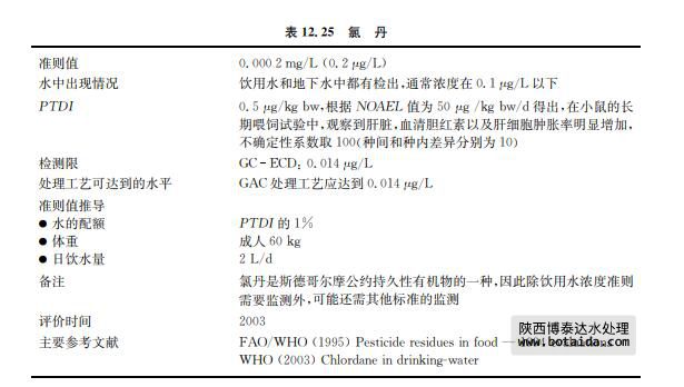 氯丹(CASNo.57 47 9)自1947年開(kāi)始使用,是一種廣譜殺蟲(chóng)劑(見(jiàn)表12.25)。目 前,許多國(guó)家已經(jīng)開(kāi)始嚴(yán)格限制氯丹的使用,現(xiàn)僅通過(guò)液下噴射的方式用于殺除土壤中的白 蟻。經(jīng)液下噴射使用時(shí),氯丹會(huì)成為地下水污染的潛在污染源,但濃度較低。氯丹工業(yè)品是 混合物,主要由順式和反式氯丹組成。氯丹不易自然降解,在土壤中不易遷移也不易進(jìn)入地 下水(僅少量檢出)。氯胺易散失進(jìn)入大氣。雖然食物中所含氯胺的濃度水平一直在降低, 但氯胺具有持久性和較強(qiáng)的生物累積可能。