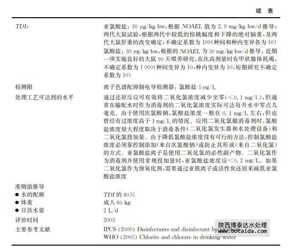 亞氯酸鹽和氯酸鹽是使用二氧化氯作為消毒劑或用于去除水中嗅味和異味的副產(chǎn)物 (見表12.28)。二氧化氯同時也用作纖維、紙漿、面粉和油類的漂白劑。亞氯酸鈉和氯酸鈉 用于制備二氧化氯以及其他商業(yè)用途。飲用水出水中,二氧化氯迅速分解成亞氯酸鹽、氯酸 鹽和氯化物離子,其中亞氯酸鹽是主要成分,該反應在堿性條件下容易進行。飲用水是接觸 環(huán)境中二氧化氯、亞氯酸鈉和氯酸鈉的主要途徑。氯酸鹽也會在儲存很久的次氯酸鈉溶液 中生成,特別是在高溫環(huán)境下。