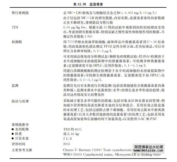 監(jiān)測(cè)藻毒素是監(jiān)管原水藍(lán)藻暴發(fā)或水華形成其他潛在可能證據(jù)(即營(yíng)養(yǎng)水平和浮游植 物物種組成)的最有效方式,可預(yù)警此類事件的發(fā)生。相比之下,監(jiān)測(cè)出廠水目標(biāo)藻毒素濃 度不足以判斷水質(zhì)是否安全,因?yàn)榇罅康亩舅兀ㄌ貏e是微囊藻毒素)除了 MC LR有準(zhǔn)則值 外,其余均沒(méi)有準(zhǔn)則水平。但微囊藻毒素的分析可以用來(lái)驗(yàn)證和優(yōu)化諸如河岸天然慢濾等 處理工藝的處理效果。盡管取得細(xì)胞提取液較為簡(jiǎn)單,藻毒素分析需要特別注意細(xì)胞的提 取過(guò)程,忽略從細(xì)胞中的萃取過(guò)程將會(huì)導(dǎo)致計(jì)算濃度偏低。