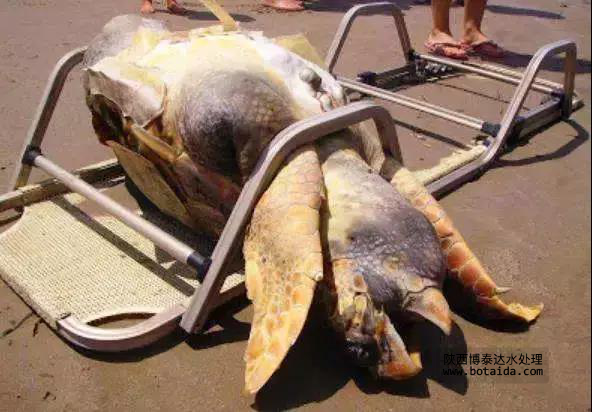 意外鉆進塑料套里被活活餓死的海龜