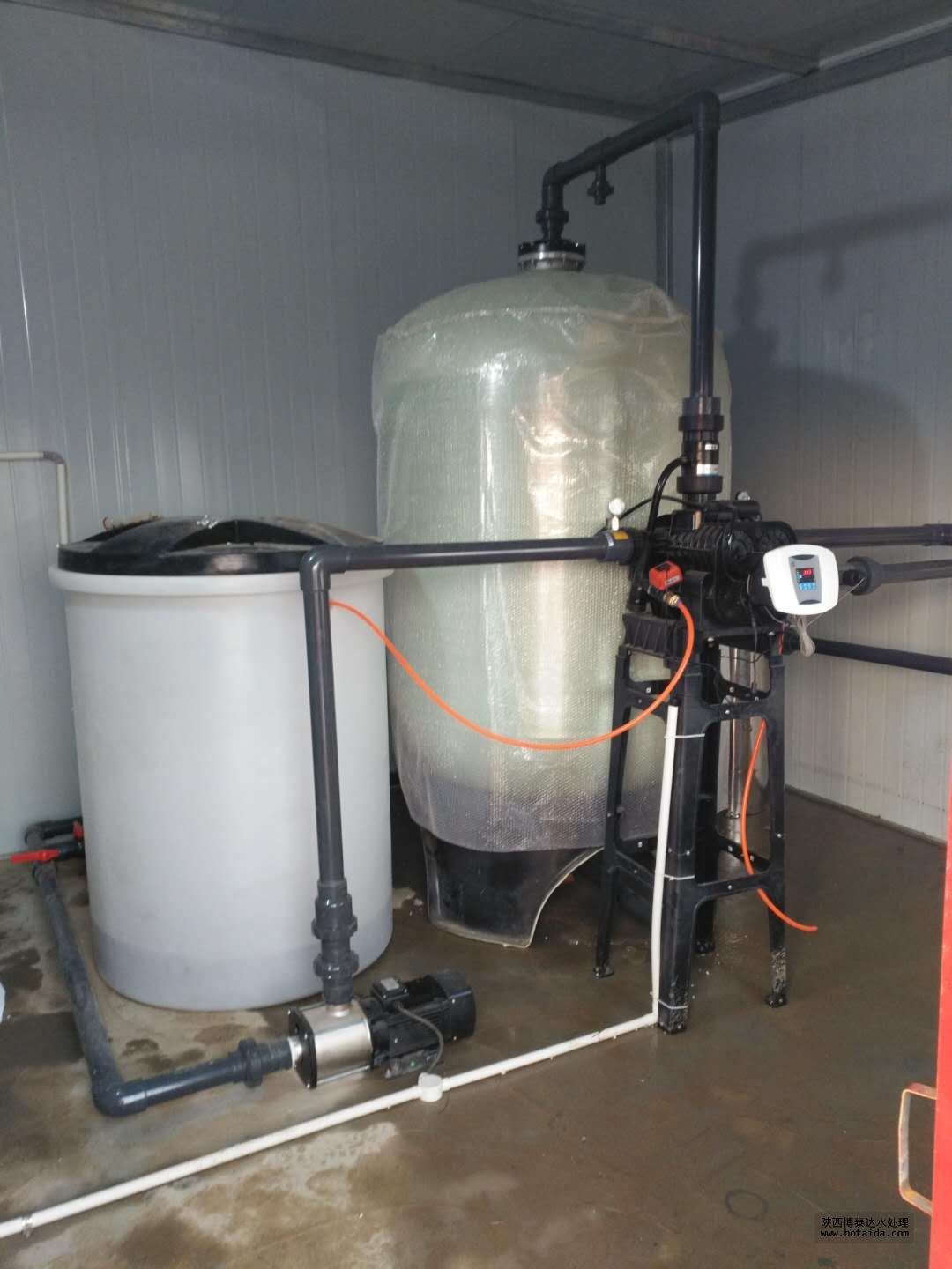 原水通過交換器時水中的鈣、鎂離子與樹脂交換柱中的鈉離子進行離子交換反應,去除原水中的鈣、鎂離子,從而使原水得到軟化。當設備運行一段時間后,鈉離子交換器中的樹脂用鹽溶液進行再生,經(jīng)再生處理后的樹脂,樹脂又重新恢復交換能力,又可繼續(xù)進行軟化處理,兩個交換罐交替進行再生、置換、清洗、運行,連續(xù)產(chǎn)水,自動循環(huán)。