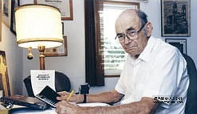 1954年前后,弗羅里達大學(xué)瑞德(Charles Reid)教授的團隊在OSW的資助下也開始研究脫鹽滲透膜。他們評價了許多從市場上找到的商業(yè)薄膜,發(fā)現(xiàn)醋酸纖維素膜具有良好的半透性,鹽截留率大于99%,水滲透系數(shù)為0.00012m3/m2·d·atm。盡管膜的透水性較現(xiàn)代商業(yè)膜低兩個數(shù)量級以上,毫無商業(yè)價值,但他們第一次使用人工合成膜實驗驗證了壓力驅(qū)動的反滲透膜脫鹽概念。1957年4月,瑞德和他的同事布勒東(E. J. Breton)在給OSW的一份報告中使用了“RO”一詞。